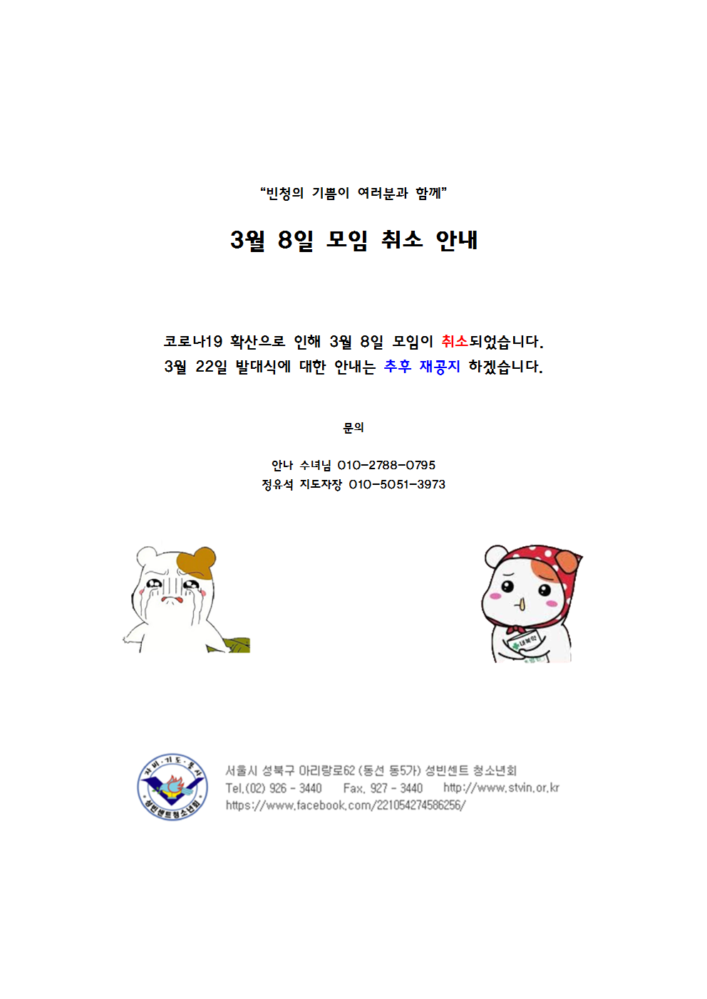 2020년 3월 8일 모임 취소 안내
