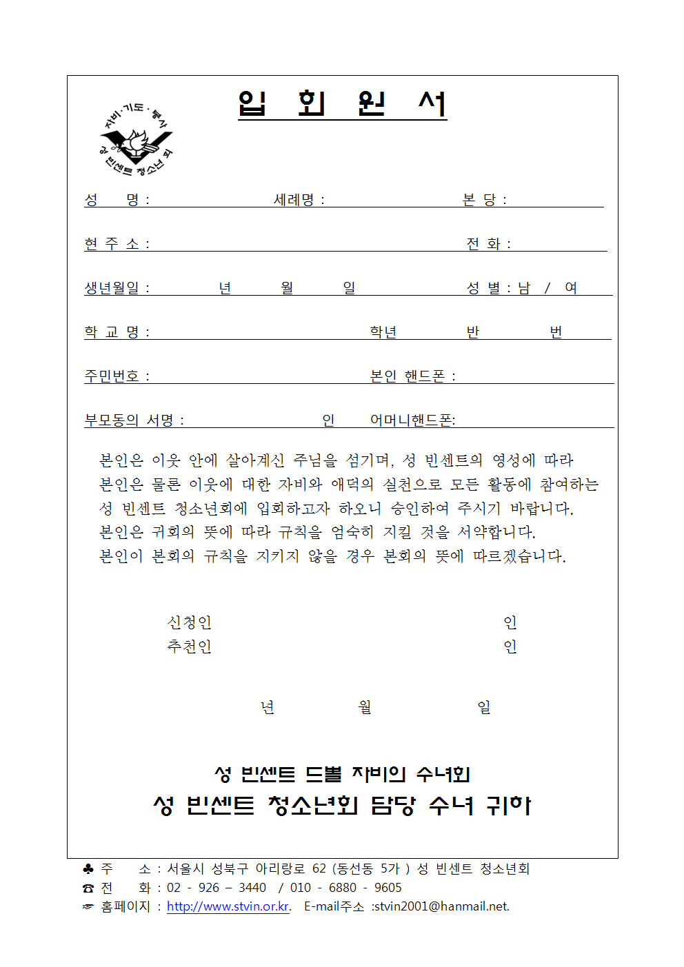 서울 성 빈센트 청소년회 21기 자원봉사단 모집